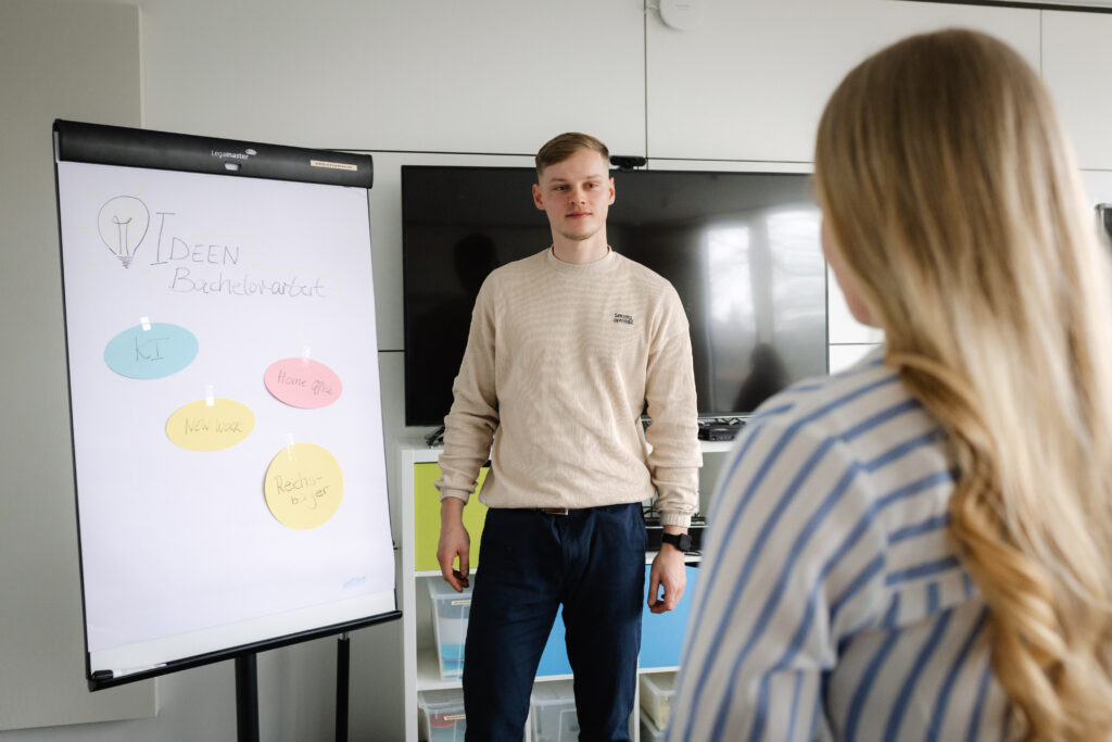 weil ich es mit den flexiblen Arbeitszeiten schaffe, Vollzeitjob, nebendienstliches Studium und Privatleben zu vereinbaren.